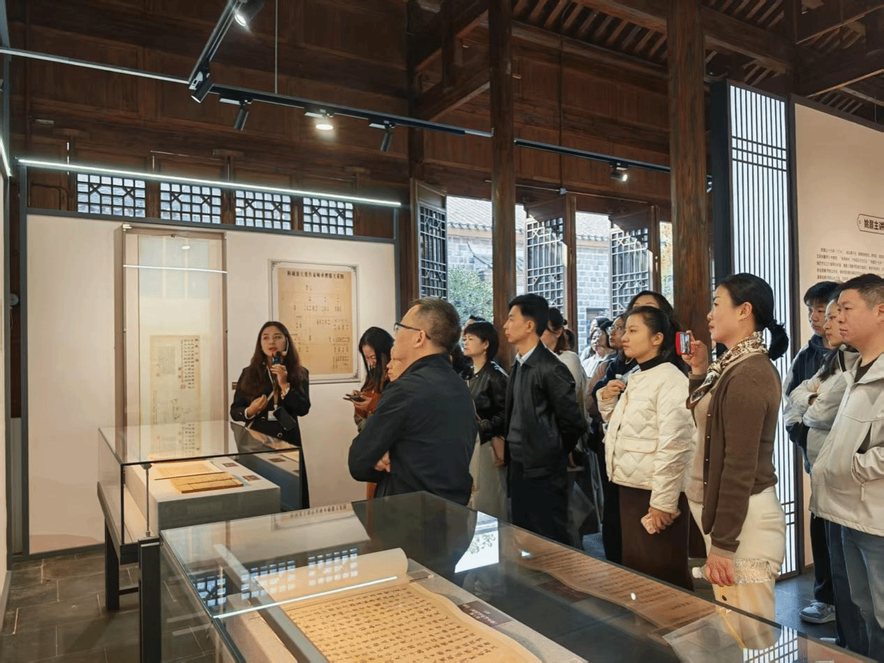 15日下午,研修教师来到桐城文庙与文博馆,开启“寻根溯源”之旅。作为桐城文化的重要载体,桐城文庙古朴庄重。在讲解员的引导下,学员们了解文庙的建筑规制与历史沿革,感受“文都”桐城尊师重教、崇文尚学的深厚底蕴。在文博馆内,从史前文明遗存到明清桐城派文献,从传统工艺展品到现代文化成果,一件件实物、一幅幅展板串联起桐城文化的发展历程,让学员们深刻认识到桐城文化是中华优秀传统文化的重要组成部分,更是思政课教学的宝贵资源。